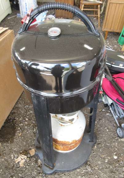 It has a rust resistant porcelain body heavy gauge porcelainized cooking grid heat gauge in the lid thermostatic handles and a stable wobble free base.